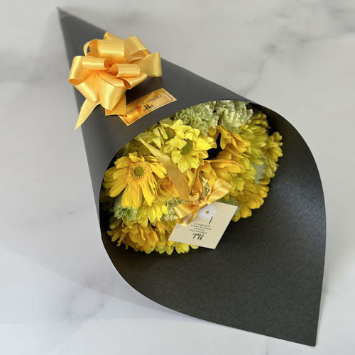 Bring joy and warmth to any occasion with this stunning Yellow Flower Bouquet, featuring a delightful mix of fresh yellow blooms paired with lush seasonal foliage. Carefully wrapped and adorned with an elegant ribbon, this bouquet is the perfect way to share happiness and positivity with your loved ones in Medellín.